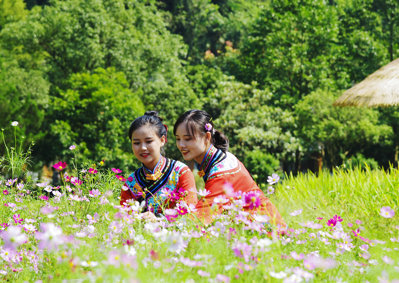 9月7日,白露節(jié)氣,張家界市武陵源區(qū)黃龍洞景區(qū)生態(tài)廣場(chǎng),百日菊、格桑花爭(zhēng)相綻放